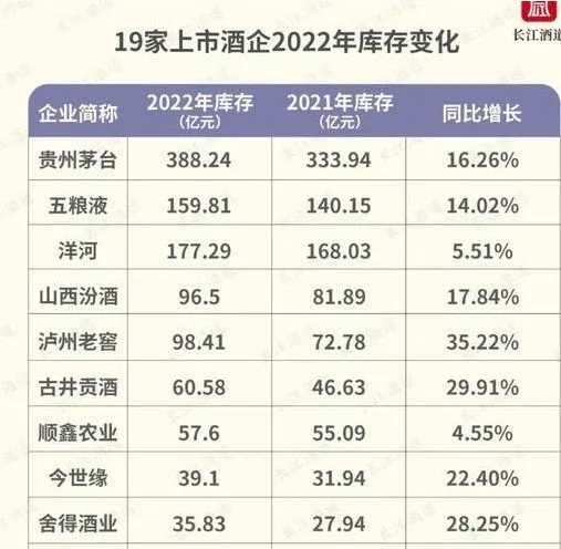 值得注意的是,2022年泸州老窖库存量相较于2021年同比增长达到35%,在一众白酒企业中位列前茅。