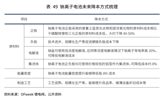 其一,未来随着产业化进展和规模化发展,钠电池成本将逐步下降。