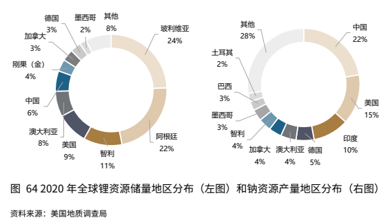 具体来看,我国的钠资源丰度较高,较锂资源优势明显。目前全球已探明锂资源储量约8600万吨,但呈现分布不均的格局,主要分布在南美洲和澳洲。我国锂资源储量约占全球的 5.9%,且以盐湖卤水为主,优质硬岩锂矿相对稀缺。这导致我国锂资源对外依存度较高,据测算,2020 年我国约74%锂盐供给原材料从澳洲进口。基于原材料供给安全考虑,电池企业是有动力寻找锂资源替代选项的。相比锂资源,钠资源地壳丰度达2.75%(锂资源丰度仅为0.006%),全球地区资源分布较分散,且在矿石、盐湖、海水中等均有广泛分布。随着未来钠电池产业化发展,将能够在一定程度上缓解锂电上游资源供给紧缺的格局。
