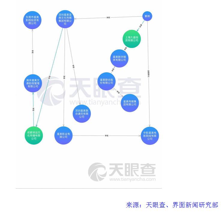 界面新闻通过天眼查梳理覃辉旗下资产发现,覃辉旗下除了两家港股上市公司的实际控制人之外,还与星美数字媒体有限公司有着投资关系;除此之外其还控制了星美圣典,覃辉正是通过它收购了圣莱达。此外,其投资公司包括星美今晟影视城管理有限公司以及深圳星美联合通讯有限公司。换言之,这些并未在港股上市公司的星美系资产,未来并不排除出现在上市公司圣莱达业务中。