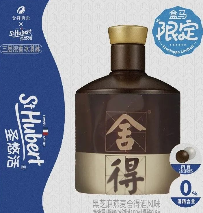近日,舍得酒业联合食品品牌圣悠活推出联名冰淇淋,产品造型沿用舍得酒类产品棕白配色罐装、规格为100g,主打卖点为“0%酒精含量”。