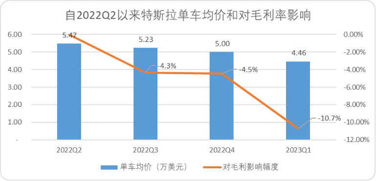 图:特斯拉单车均价及对毛利率影响,来源:企业财报、锦缎研究院测算