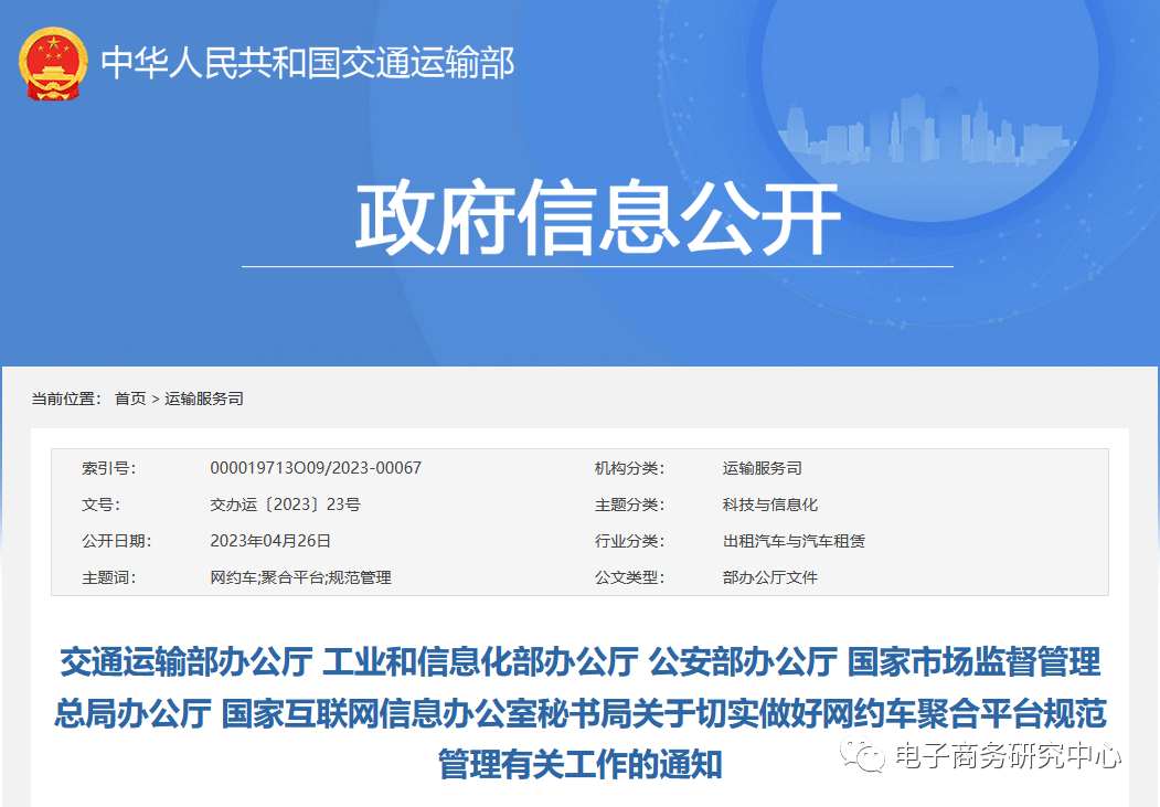 在浙江《方案》落地前,已有相关政策法规出台。在4月26日,交通运输部等五部门联合发布了一则关于网约车聚合平台的重磅通知《关于切实做好网约车聚合平台规范管理有关工作的通知》(以下简称《通知》),是首部国家级监管政策。该《通知》让此前一直处于监管空白的网约车聚合平台有了较为明确的监管方向。