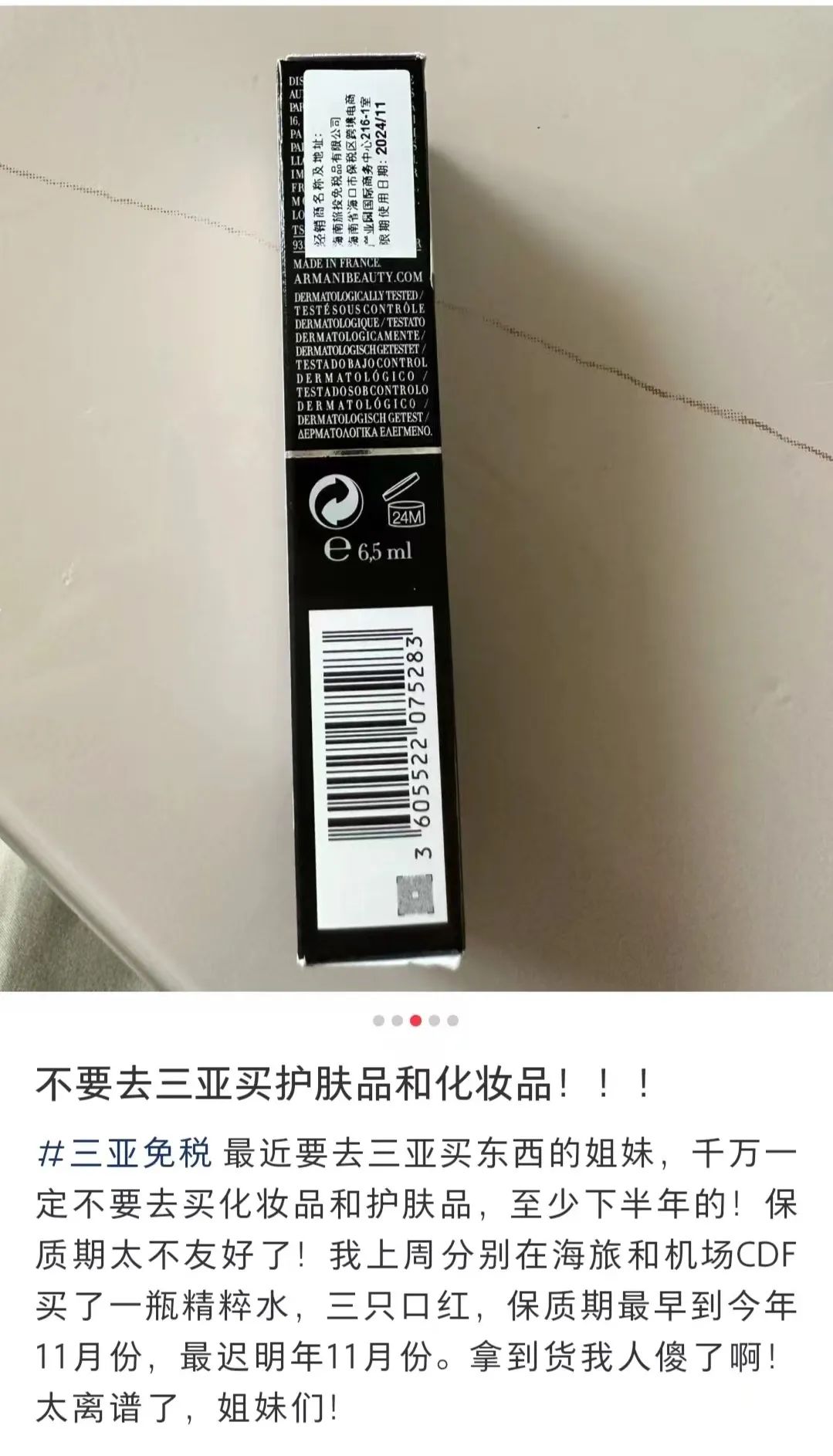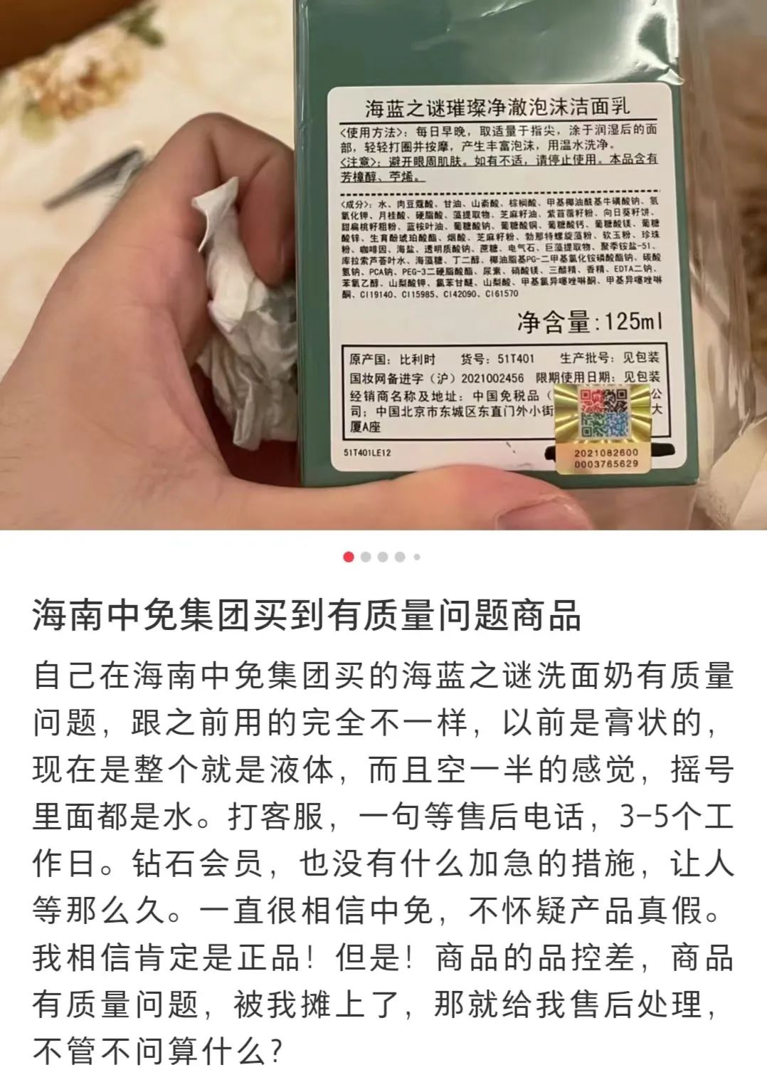 在社交媒体上,消费者对于中免的“吐槽”并不少见,对中免品控能力的质疑声不绝于耳。虽然中免有绝对的正品保障,但一些消费者对中免所售产品的质量把控存在质疑,包括瑕疵产品、临期产品以及糟糕的售后服务,免税产品在价格优惠的同时是否也存在“质量打折”的情况成为一种普遍存在的担忧。