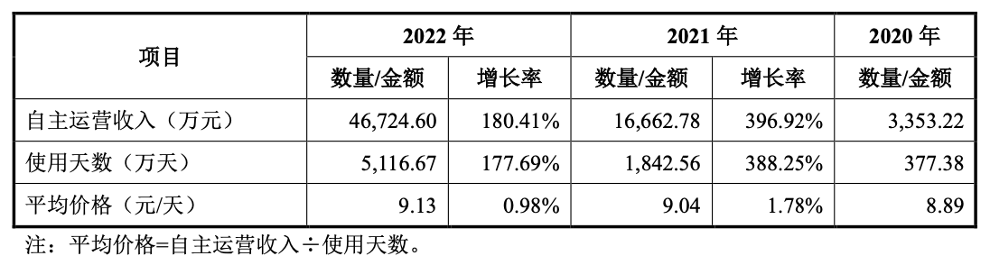 报告期内,公司自主运营收入由2020年的3353.22万元增加至2022年的4.67亿元,得益于覆盖城市用户数量显著提升,其城市覆盖数由2个增加至36个,在网用户数由0.26万个增加至23.18万个,而从平均价格来看,期内整体增幅不大。
