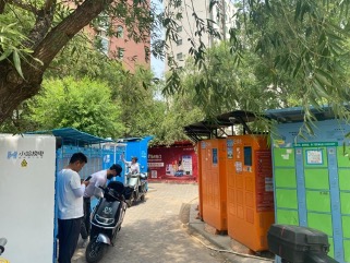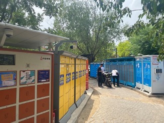 26日上午11时,界面新闻记者根据这锂科技的换电地图找到了一家换电站——位于北京市朝阳区定福庄北街东领建筑家园,记者现场发现该地齐聚9家换电品牌,包括中国铁塔、e换电、智租换电、锂纳斯换电、小哈换电等,其中换电柜数量较多的为这锂换电、中国铁塔、e换电、国网换电。在此停留的半个小时内,即便位于送餐高峰期,但记者注意到仍有不少骑手前来换电,有的品牌接连不暇,有的则冷冷清清。