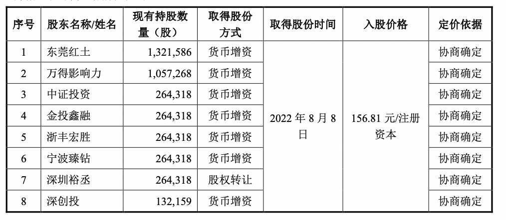 2022年8月,8名投资者通过增资、股权转让入股宇谷科技,以2.7亿元认购新增注册资本172.1867万元,对应估值约22亿元。本次IPO,按募资额估算,宇谷科技最少估值在44亿元。