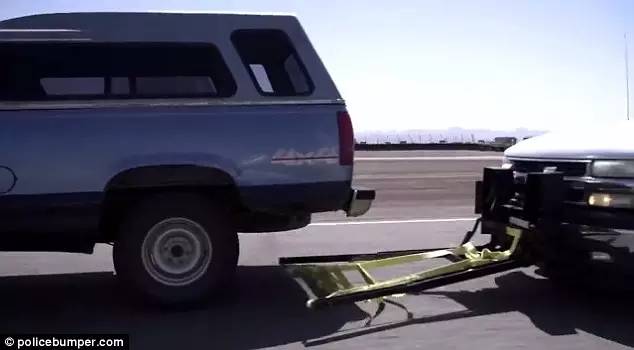 比如这个叫 Grappler的东西,同样是安装在警车的前保险杠上,可向被追车辆的后轮抛下套索,从而通过警车的制动迫使前车停下——听起来似乎是从西部牛仔那里得到的灵感。