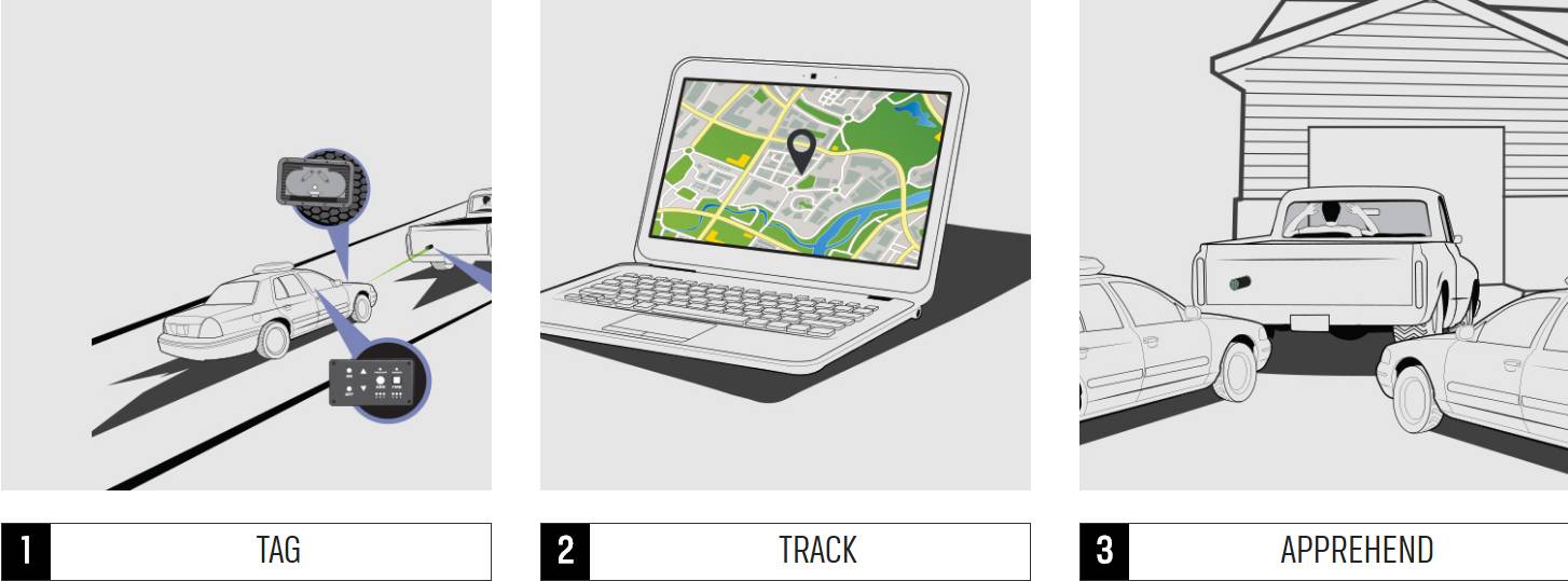 另外还有 StarChase,该装置可向嫌犯车辆发射追踪器,通过 GPS 定位车辆位置,警察不必紧紧相随,从而避免追车危险。