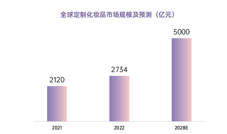 据市场调研机构发布的数据显示,新一代定制化美妆市场的规模在2019年已达到2650亿元,并将在2028年超过5000亿元。在私人定制化妆品盛行的未来,客户的数量将以指数级地增长。