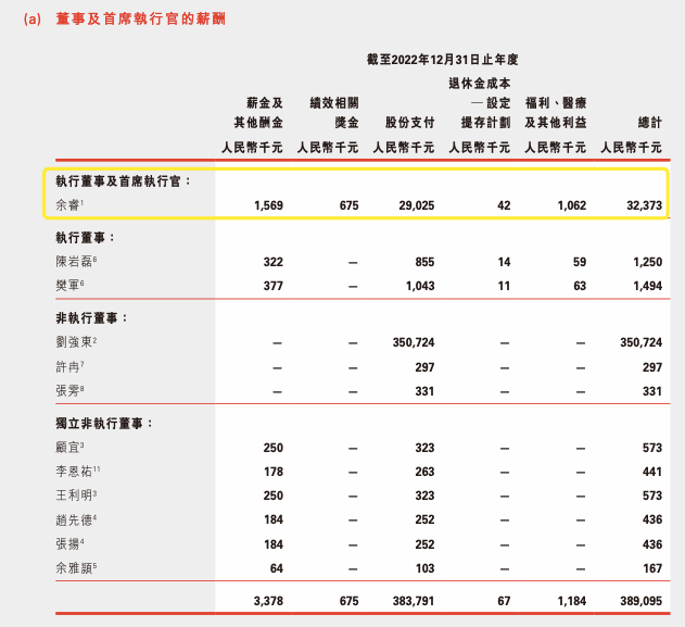 薪酬方面,年报显示,截至2022年12月31日,持京东物流0.1%股份的余睿薪酬及其他收益共3237.3万元。其中,薪酬156.9万元,绩效奖金67.5万元,股份收入2902.5万元,福利、医疗等收益106.2万元等,加上期末持股市值合计1.25亿元,是京东物流中除刘强东外收入最高的高管。