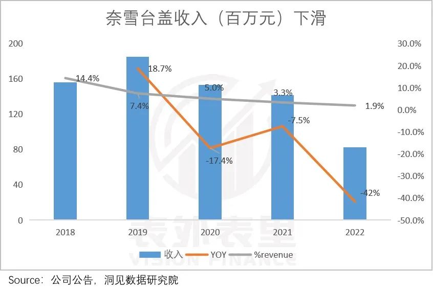 可以看到,台盖收入逐渐下滑,即便后续调整了产品结构,也没止住下滑趋势。