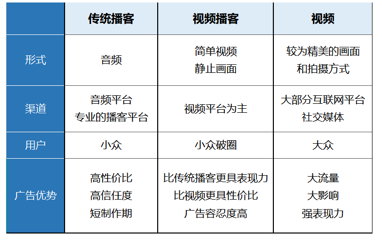 三种方式的对比:播客转型“听+看”,融通平台流量