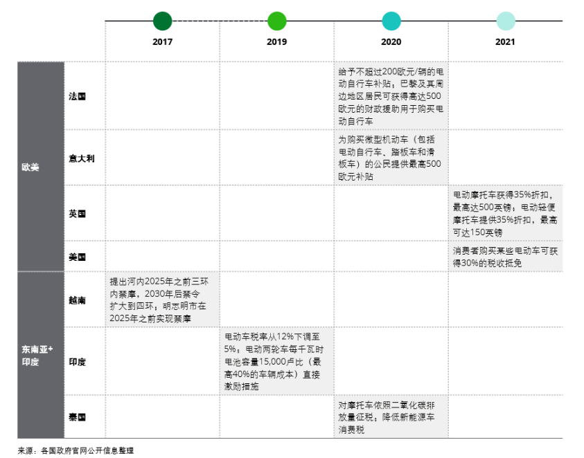 受益于“碳中和”,各国纷纷出台了电动两轮车补贴政策。2017年:越南河内市议会决定在2030年彻底禁止摩托车上路;2019年8月印度电动车相关税率从12%下调至5%,且消费者将获得15万卢比所得税减免。印度提出自2023年起,所有在售的三轮车将全部转型为电动车。自2025年起,所有在售的150CC以下的两轮车将全部为电动车。