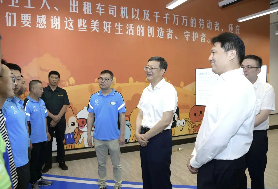 随后,市领导来到位于普陀区长风新村街道的近铁e站党群服务站。这里为楼宇企业、员工和新就业群体提供党建、治理、营商等三位一体服务,通过创设楼宇治理委员会推动楼宇党建升级、楼宇治理“破圈”。陈吉宁实地察看站点为楼宇员工提供的服务清单、活动项目,仔细了解以外卖骑手为代表的新就业群体党建工作开展情况,对一线党群工作者创新工作方法、积极联系服务、凝聚党员群众的做法表示肯定。在多功能活动室,为外卖骑手量身定制的“思想荟”品牌课程正在进行。