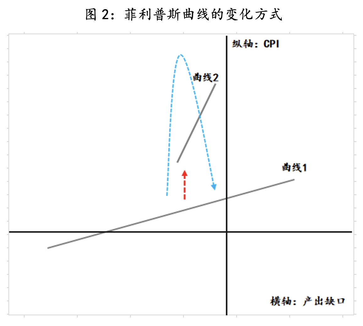 因此,对于日本央行而言,当务之急就是要对当前日本菲利普斯曲线的移动进行甄别,即要判断移动方式究竟是图1的红色箭头方式,还是蓝色箭头方式。