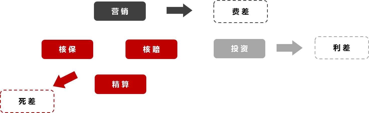 保险行业的底层是精算和产品设计,前端是销售,中间是核保和核赔,此外还有一项重要的业务是资产管理。
