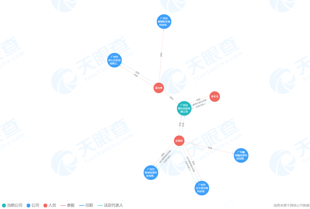 作为关联公司,广州总都国际生物科技有限公司是一家以从事科技推广和应用服务业为主的企业,同时也包含化妆品生产经营业务。