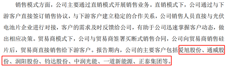 2022年,成立仅4年的高景太阳能营业收入已超175亿元,申报上市前估值达到200亿元。公司与爱旭股份(600732.SH)、通威股份(600438.SH)、润阳股份(300920.SZ)、钧达股份(002865.SZ)、中润光能、一道新能源、正泰集团等有深度的业务合作。