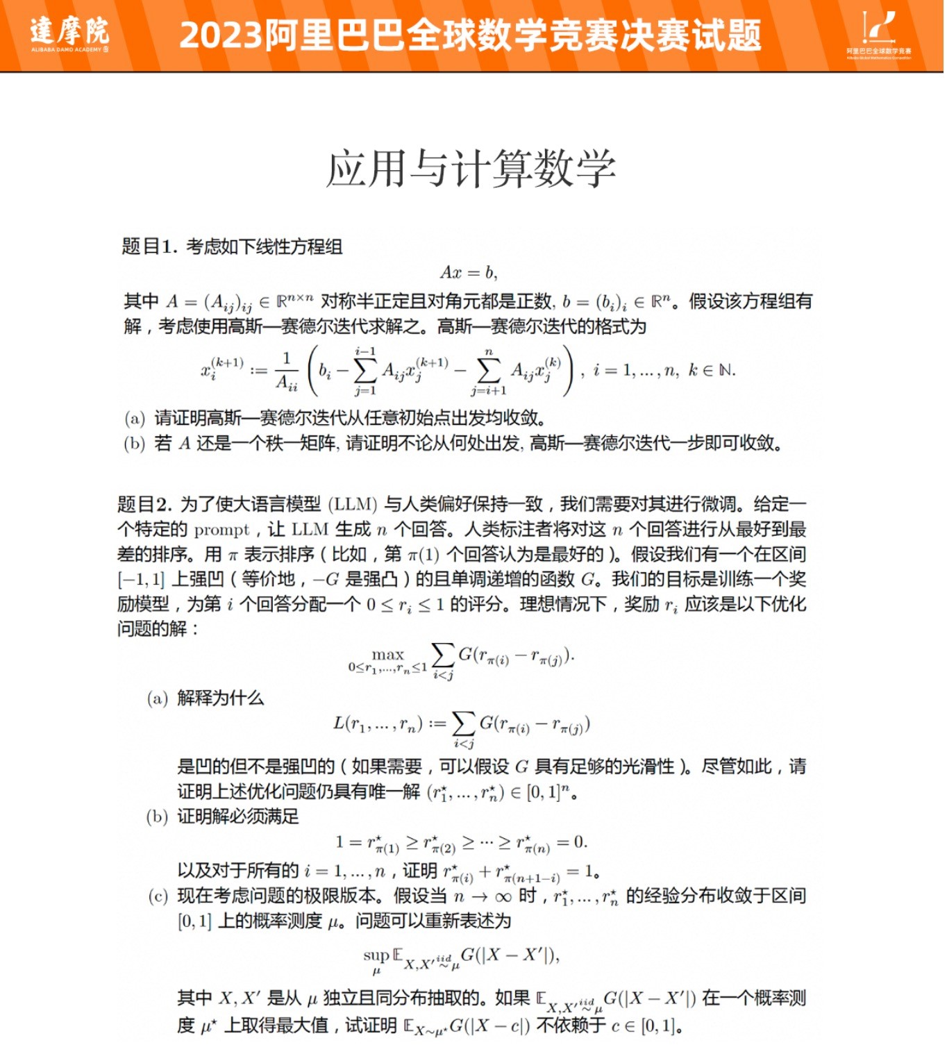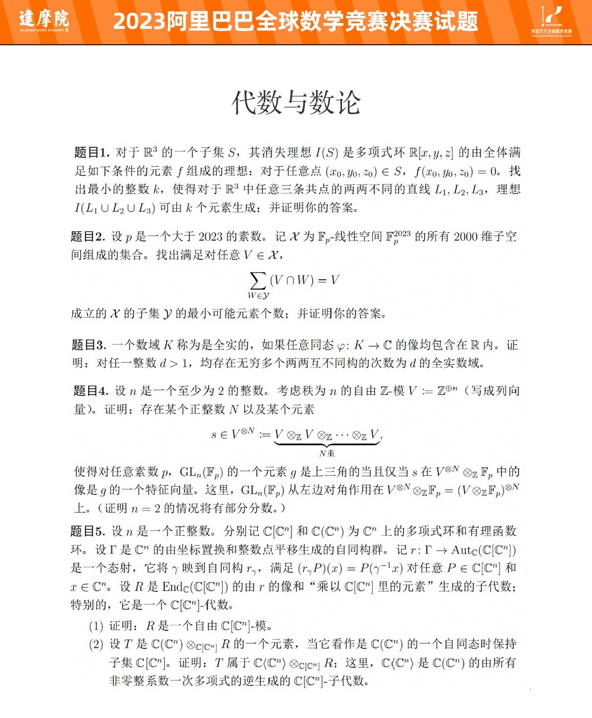 附:2023阿里巴巴全球数学竞赛决赛赛题