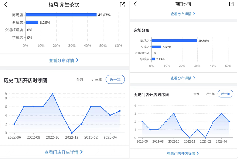 这一点,和各大品牌的表现一脉相承。窄门餐眼数据显示,椿风目前的门店数量为109家。按照窄门餐眼统计的“历史门店开店时序图”,椿风进入2023年后,开店的节奏明显趋稳。另一个品牌荷田水铺目前拥有47家门店,今年2月份后,荷田水铺以每月新开2家左右的节奏稳步推进品牌拓张。