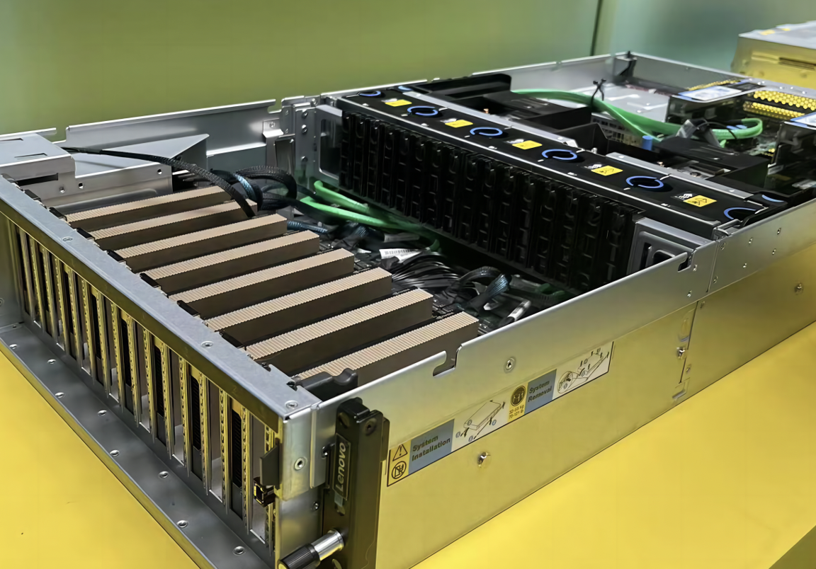 具体参数上,联想ThinkSystem SR670 V2服务器采用了3U高密度设计,搭载两个第三代英特尔至强可扩展处理器,不仅支持了NVIDIA的Hopper旗舰型GPU,也可支持NVIDIA Ampere数据中心产品组合,从而满足AI计算工作负载的需求。