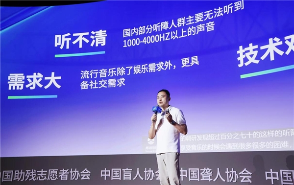 会议上,腾讯音乐技术副总裁、天琴实验室负责人周文江向与会来宾介绍了QQ音乐在无障碍方面的工作。同时,QQ音乐正式发布“无障碍声活计划”,不定期更新最新的、高质量的低音频歌曲,让听障人群能够及时听到更多、更流行的歌曲,让他们的“娱乐声活”更加丰富多彩。今年QQ音乐计划上线100首低音频歌曲,并与“国家无障碍云展馆”积极合作,同步上线。