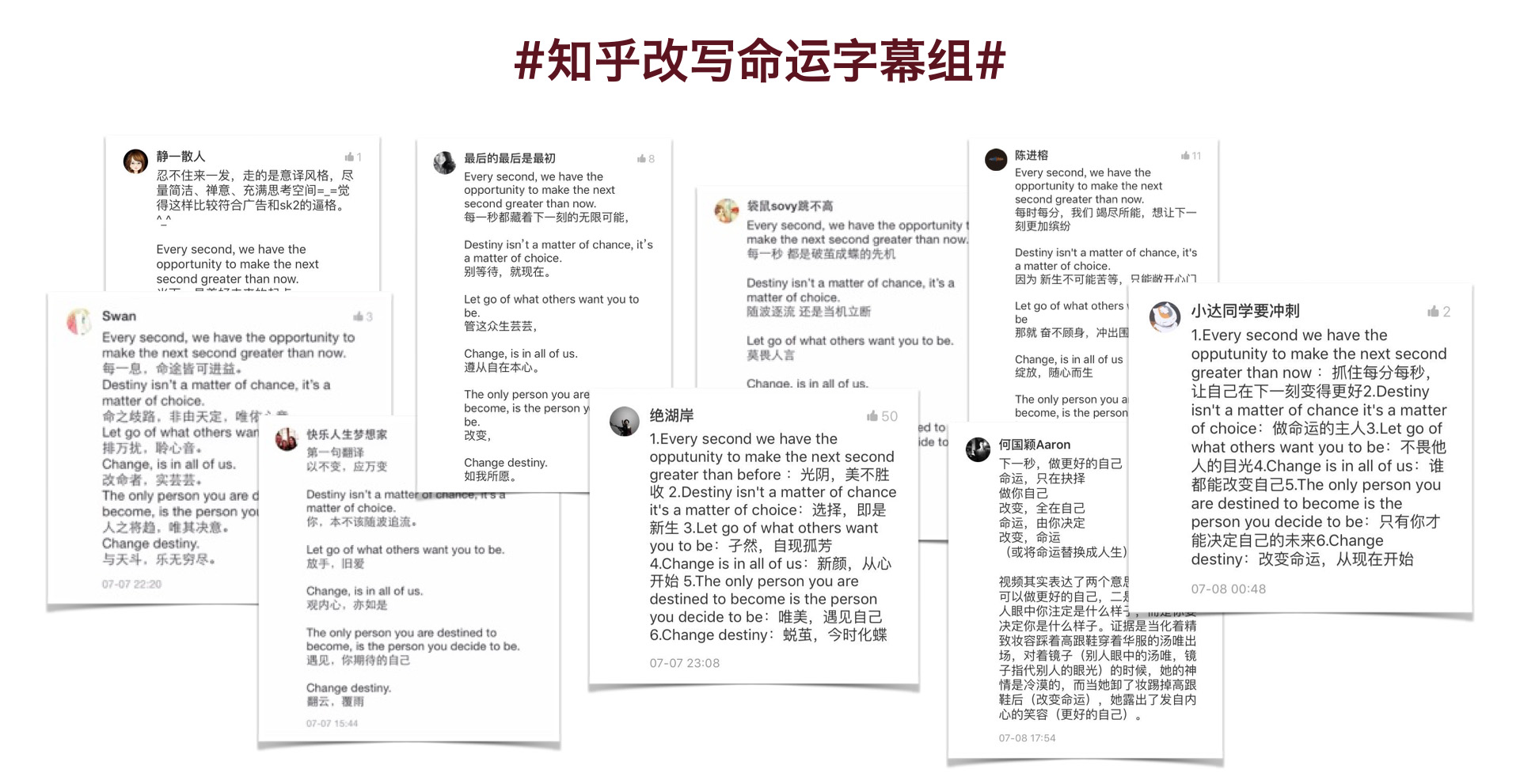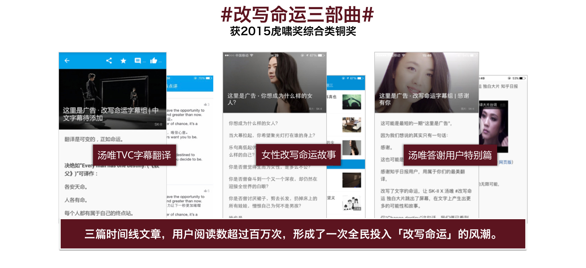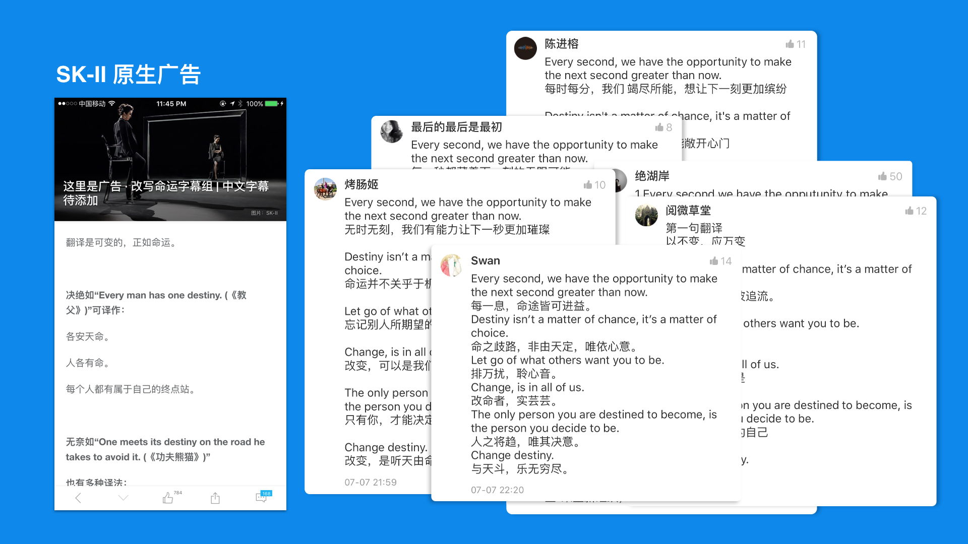 SKII发布原生广告 #改写命运字幕组#,征集TVC字幕翻译,一举获得了上百条高质量UGC内容。