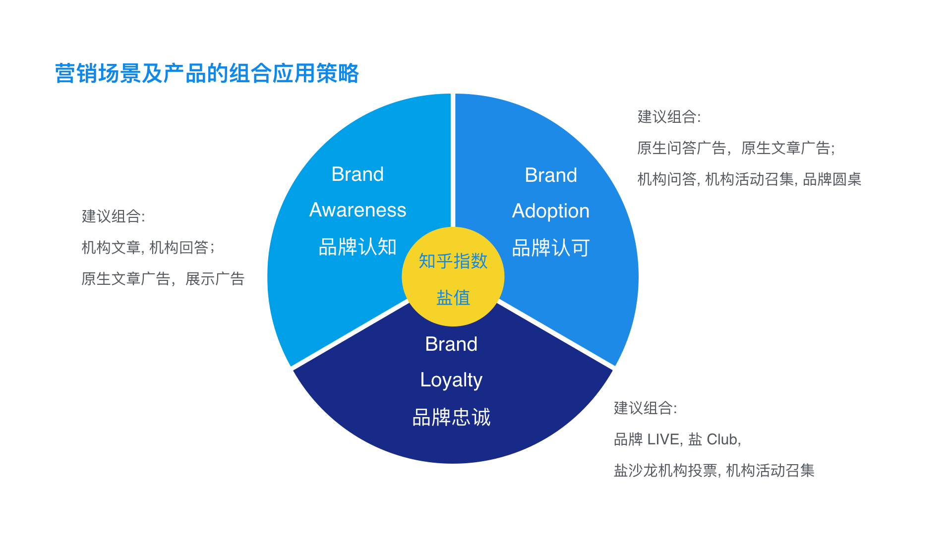 这些产品在具体的品牌建设的各个场景中可以怎样组合使用呢?知乎官方给出的答案是: