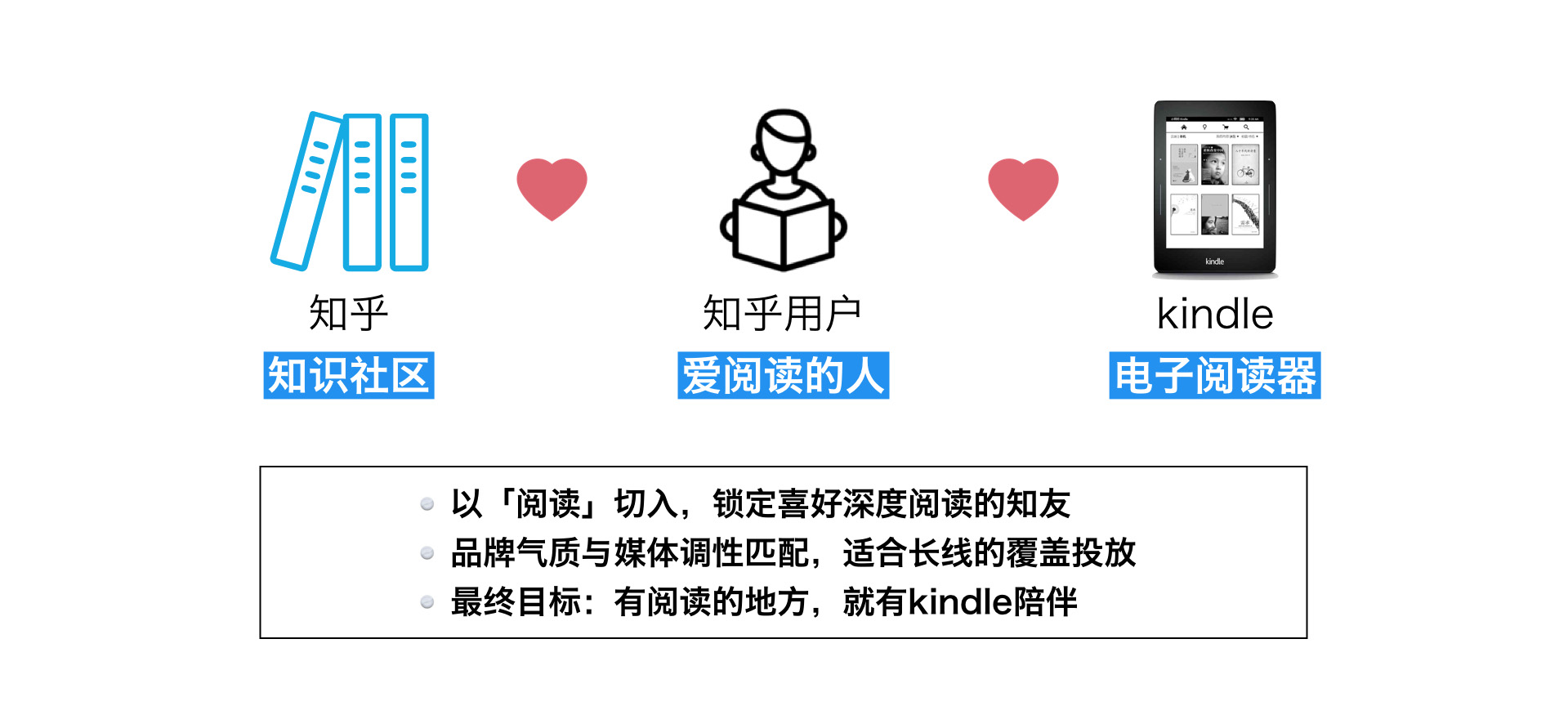 Kindle从阅读切入,锁定喜好深度阅读的知友。从2014年开始,从展示广告到原生广告投放10于波广告,很多用户通过知乎知道了Kindle,关于购买决策和如何使用的问答增多,关注人数增长了14倍,站内总问答数增加了3倍,总评论数提升了5倍,赞同数提升了9倍。