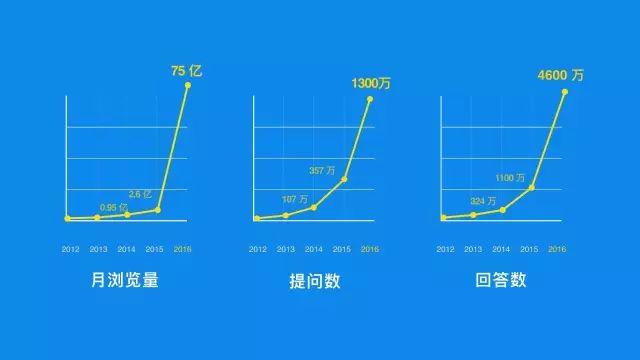 截止 2016 年 9 月,知乎已经有 6000 万注册用户,平均日活跃用户达 1600 万,人均日访问时长 40 分钟,整个知乎月页面访问量超过 75 亿。