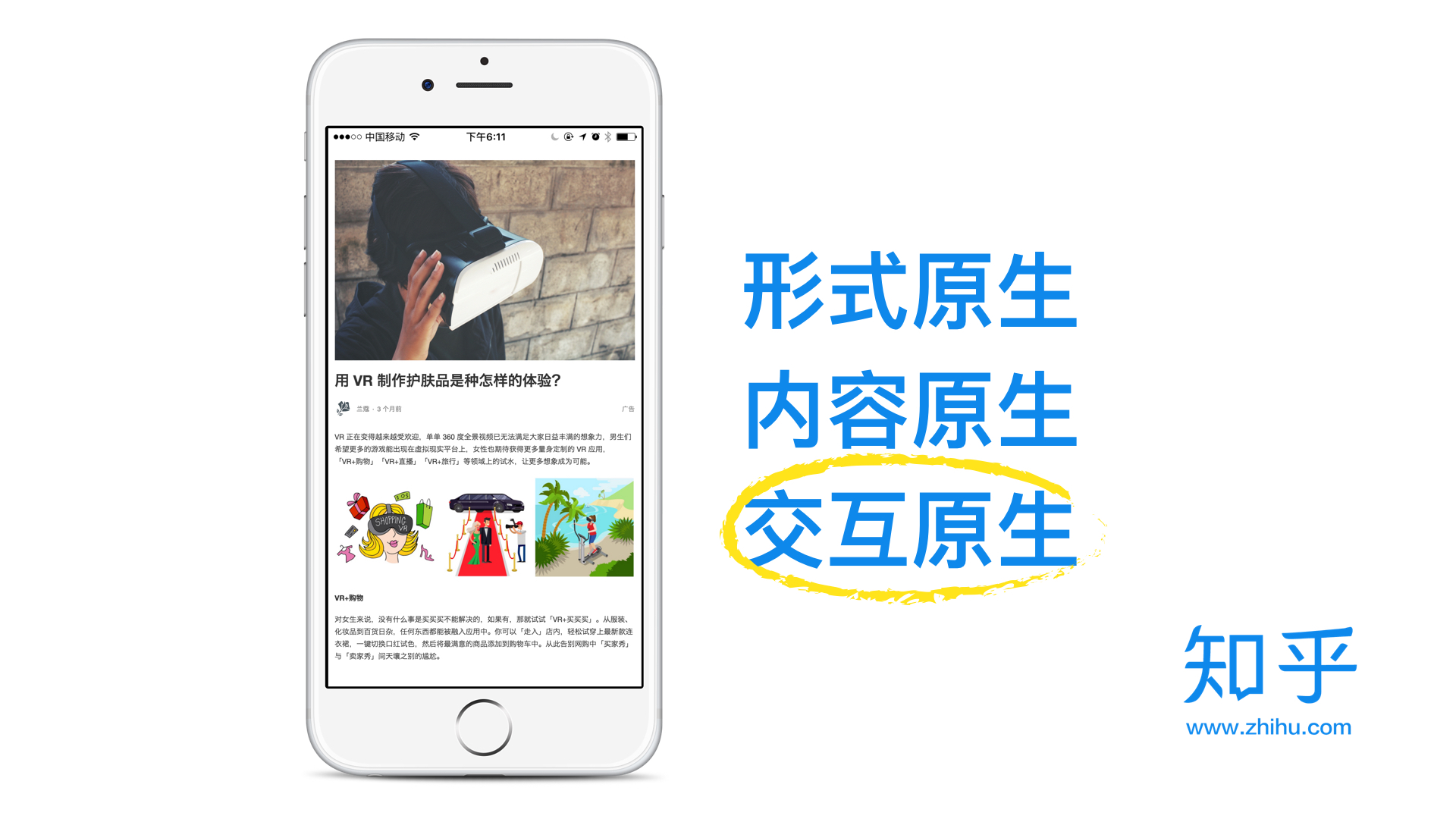 原生广告方面,除了形式原生,内容原生,知乎的原生广告更强调交互原生。