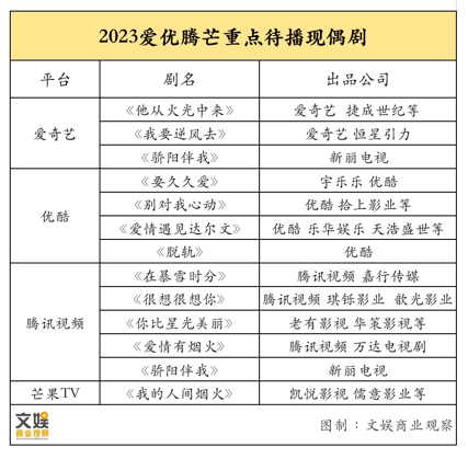 文娱君梳理发现,在2023接下来的时间里,平台间的现偶剧市场话语权争夺将主要围绕优酷、腾讯视频展开。