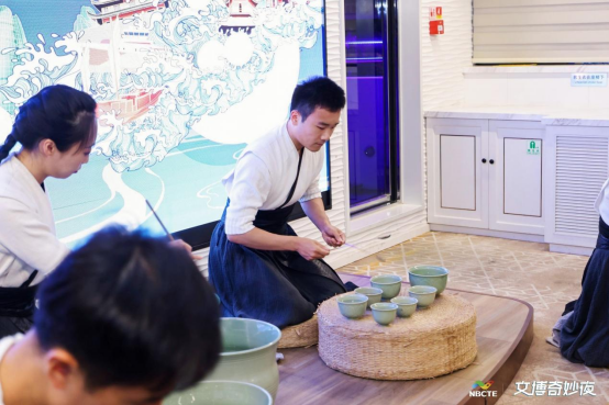 传承人昝昊向大家介绍了青瓷瓯乐历史并现场演奏瓯乐曲《汲露》和《窑工乐》。青瓷瓯乐曾是我国古代伴随越窑青瓷的发展而盛行的一种艺术形式,其深厚的历史文化底蕴及独特典雅的艺术风格,深受在场的嘉宾的喜爱与赞赏。
