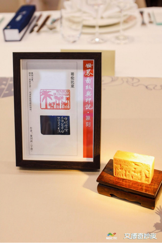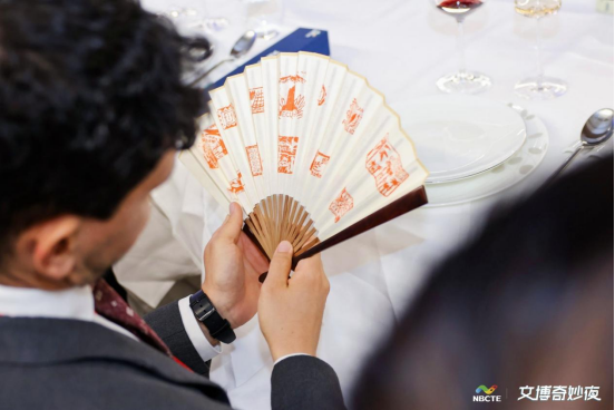 除了独一无二的国家主题印章,现场的外宾更是收到了一份宁波特色伴手礼,由天一阁特别定制的奇妙夜主题折扇,也是菜谱,更是11国印章图案的一次集锦。