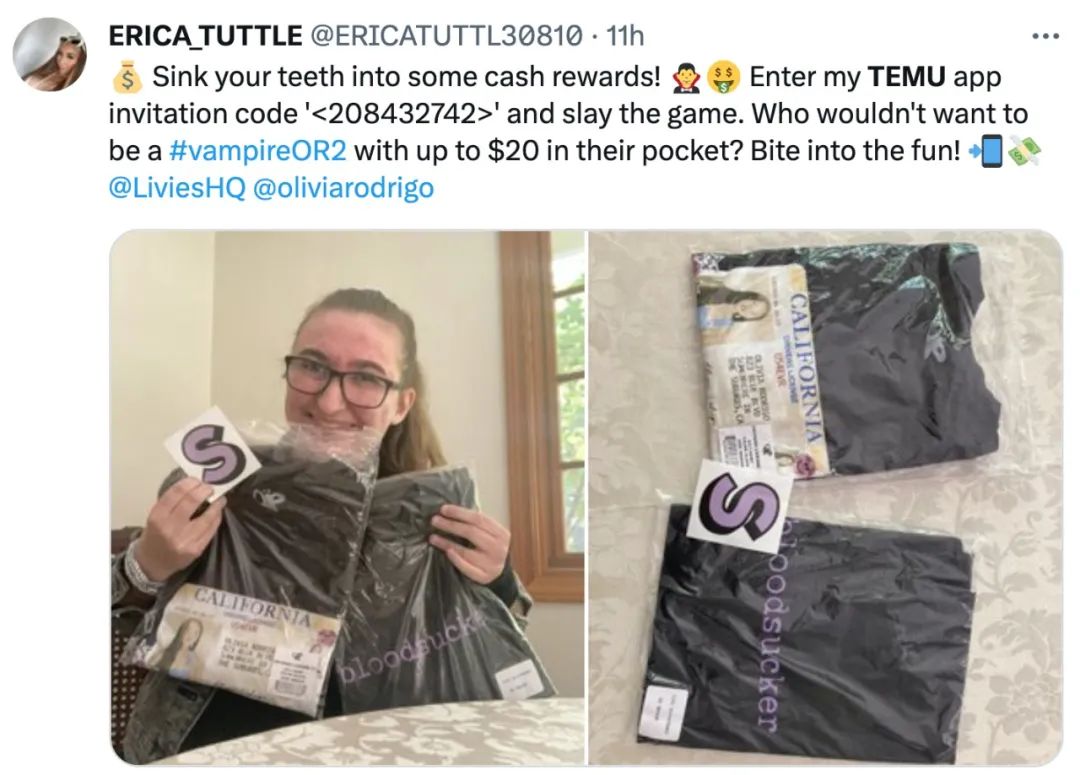 Temu的流量来自于在Facebook、Twitter等社交平台上的病毒式裂变传播,通过分享优惠码拉新,而这样的帖子每天都会出现成千上百条。凯丽发现,平台上的消费者每个订单的购买件数也很多,这意味着下单的人会在平台上逛一段时间然后凑齐所有要买的下单,逛得越久,代表对平台越感兴趣。