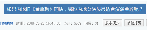 天涯上的话题:如果内地拍《金瓶梅》的话,哪位内地女演员最适合演潘金莲呢?