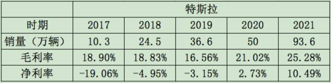 那么意味着合理的参照系就只有特斯拉一家,而比亚迪的发展路径由于其横跨燃油车、混动车、纯电车三种技术路径,并且早在燃油车时代其产能就已经超过40万,所以其历史数据并不适合作直接参照。