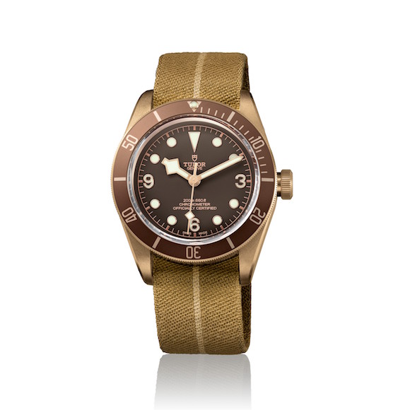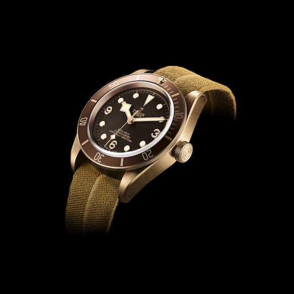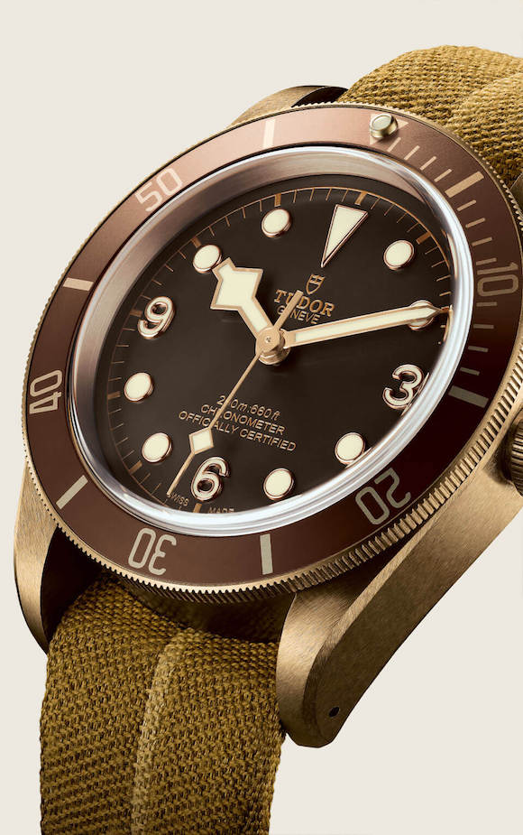 早期帝舵为法国海军供货时曾被要求无需为腕表配备表带,因为他们已有自己的表带。其中一款早期腕表相当特别,其表带以弹性织物制成,自法国救援队降落面料,中央的黄色丝线让人依稀可以辨出原本的用途,而帝舵正是从它身上汲取灵感,制作出Heritage Black Bay Bronze的米棕色提花织带。