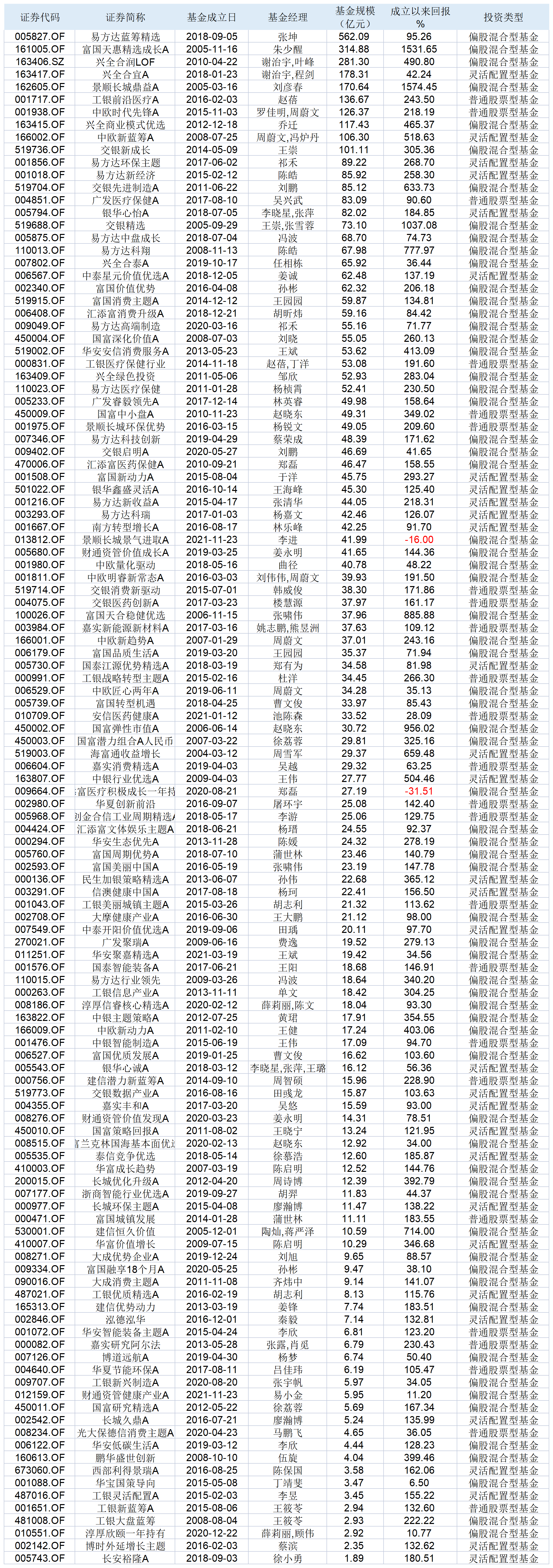其中更不乏10倍、8倍、5倍基金。刘彦春管理的景顺长城鼎益A、朱少醒管理的富国天惠精选成长A以及王崇、张雪蓉共同管理的交银精选等3只成立于2005年的老基金,成立以来回报都已超过10倍。