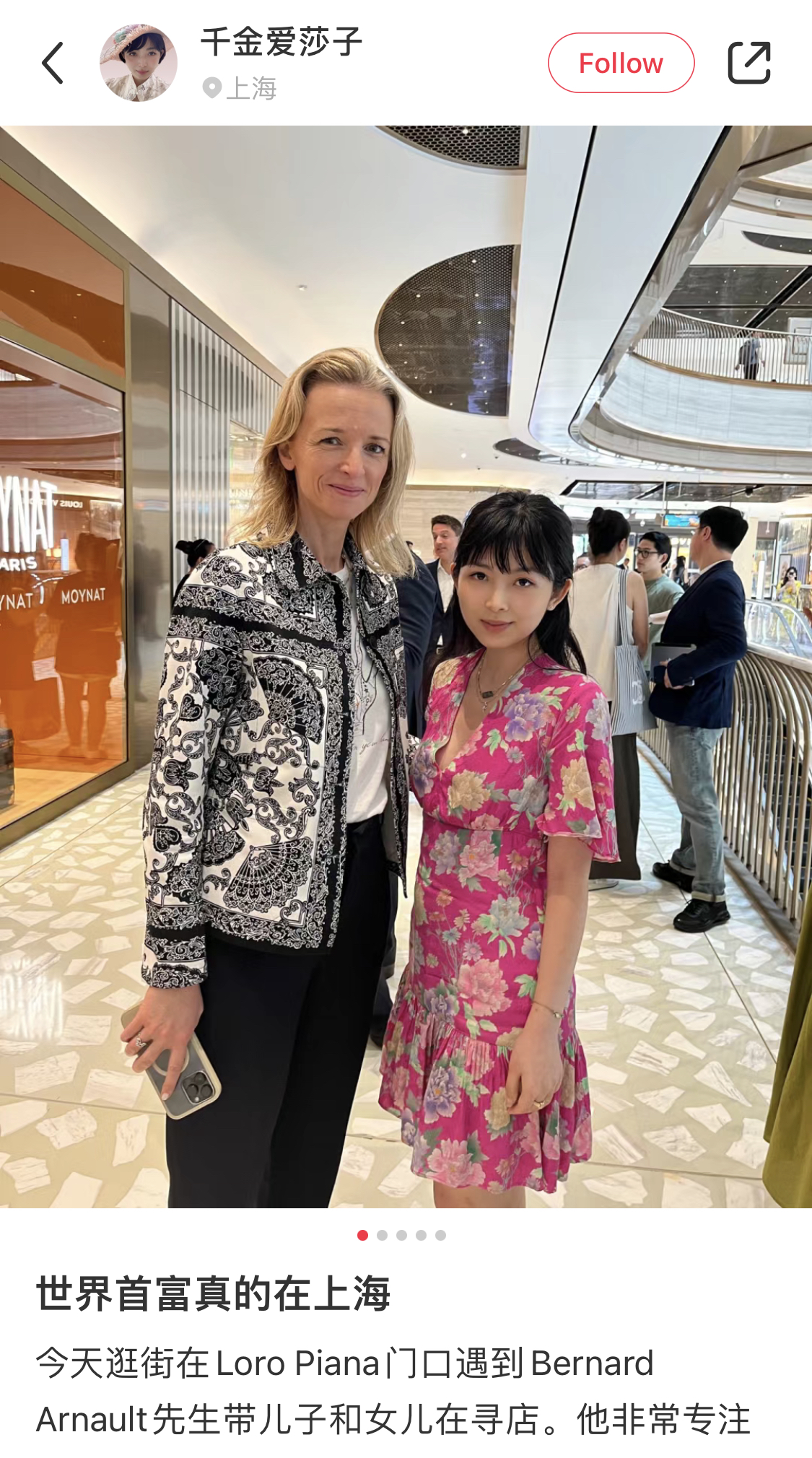 在6月29日前往上海之前,社交媒体上已经流传出Bernard Arnault将要拜访的商场和品牌门店名单,甚至精确到他将在何处吃午饭。