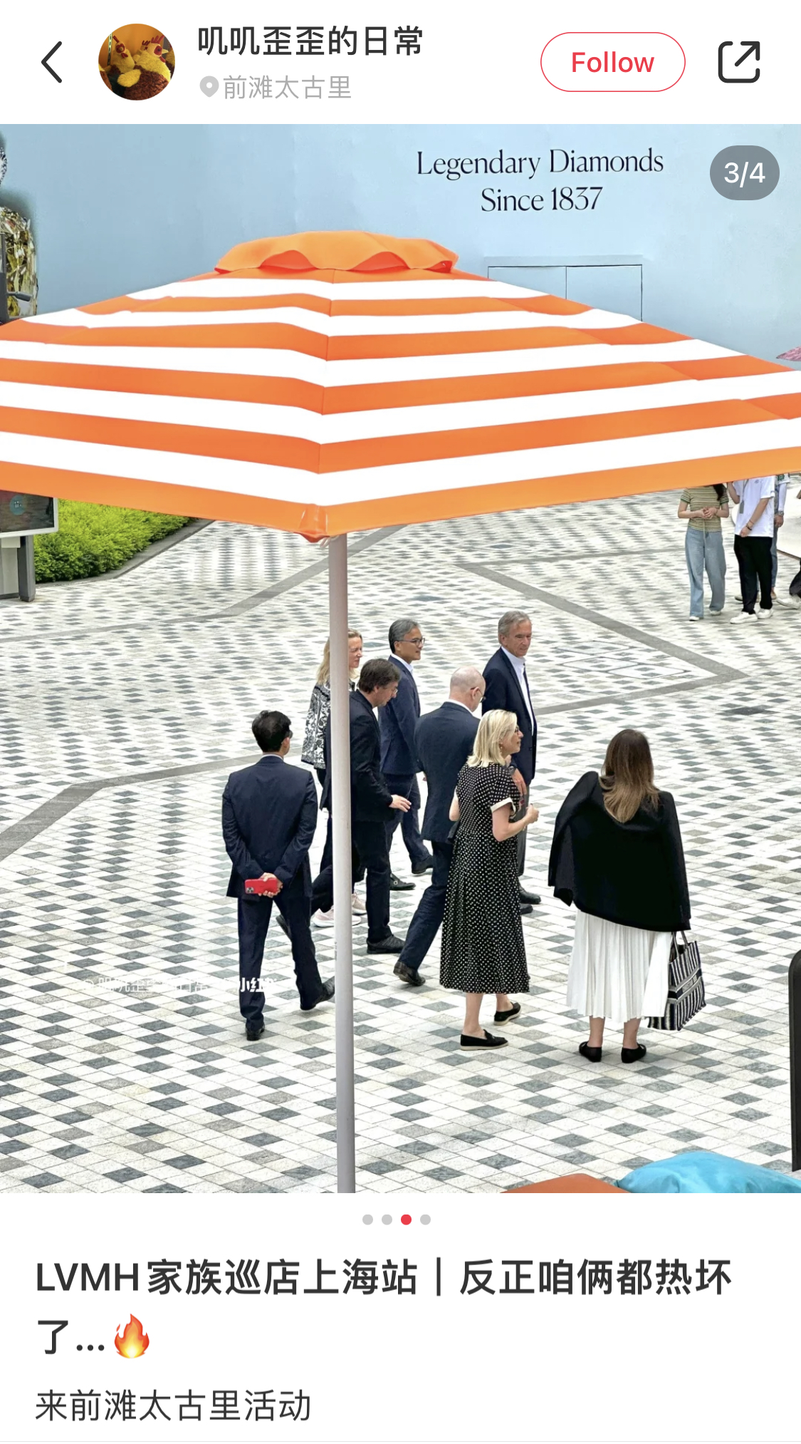 有开发商打趣说,要去南京西路恒隆门口堵Bernard Arnault给他看招商计划;有的网友早早在浅滩太古里蹲点,表示要“碰财神”、“拜财神”;各种预测也漫天飞散,似乎只要任何Bernard Arnault稍稍停下脚步的地点,都要开出新的路易威登或者迪奥旗舰店。