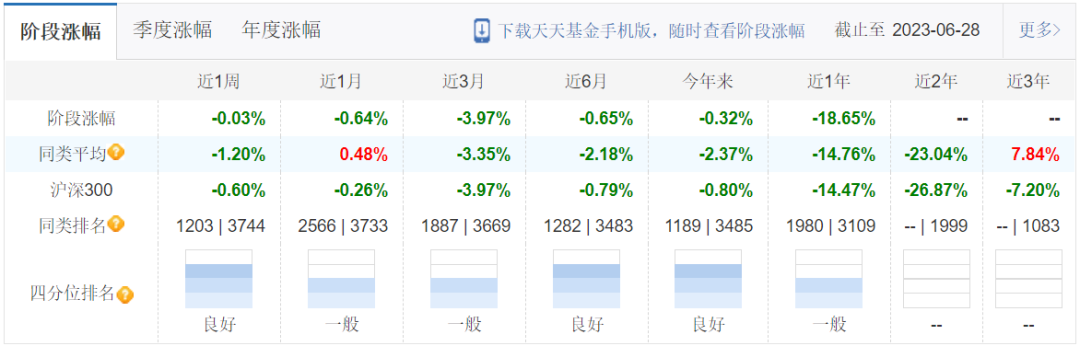 不过,截至2023年6月28日,该产品近3月、近1月表现一般,A类份额收益率分别为-3.97%、-0.64%,C类份额收益率分别为-4.11%、-0.69%,均低于同类平均的-3.35%,0.48%。