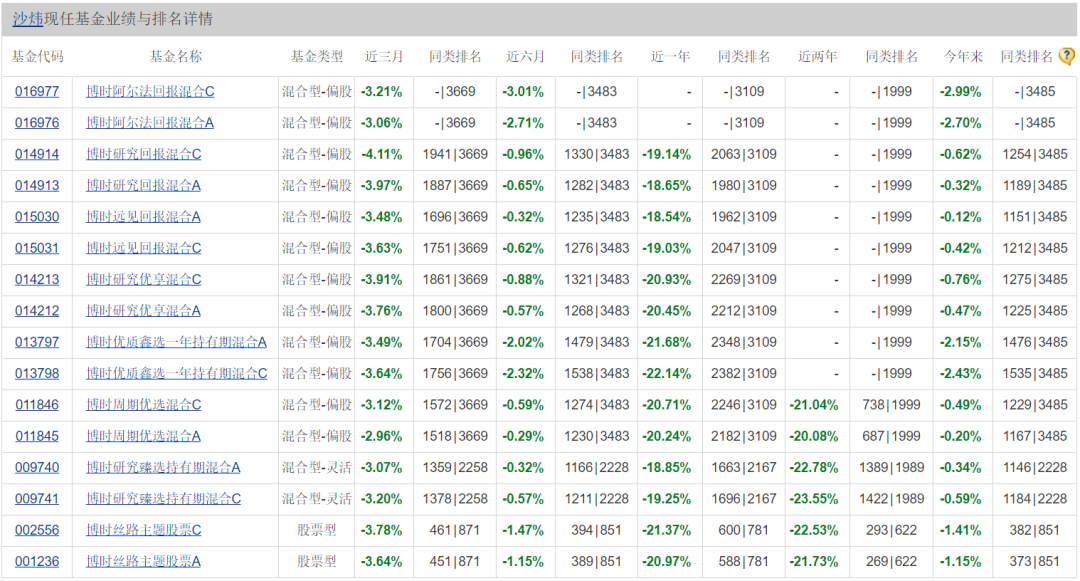 独角金融梳理沙炜在管产品情况,今年来,其所管的8只产品收益率均为负。