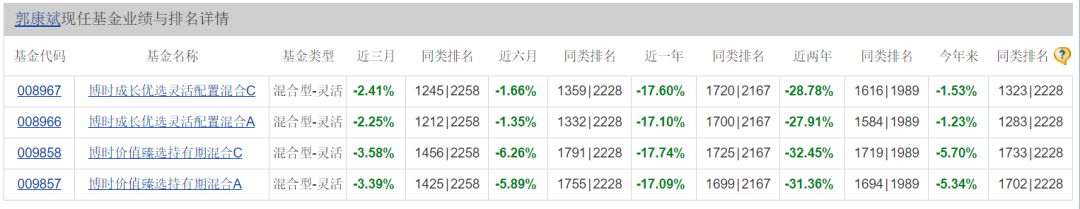 该产品的基金经理郭康斌从业一年多,目前管理了2只产品,所管产品收益率均为负,近一年收益率均跌超17%。
