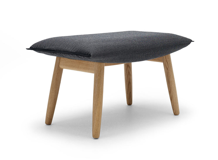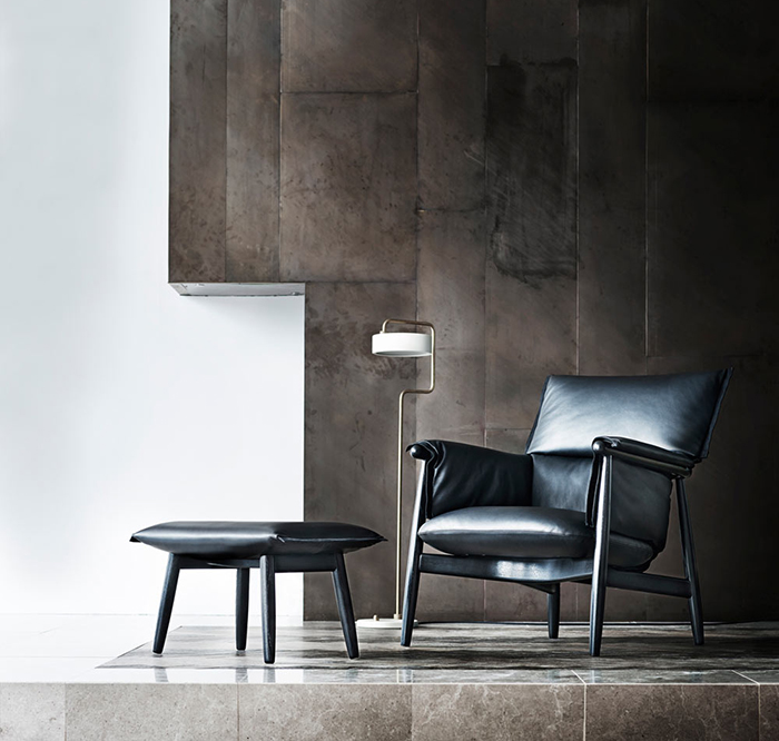 躺椅和脚凳都由实心橡木或胡桃木制成,装饰以各种皮革和织物的组合,拥有黑色、白色、棕色或是蓝色等多种配色。