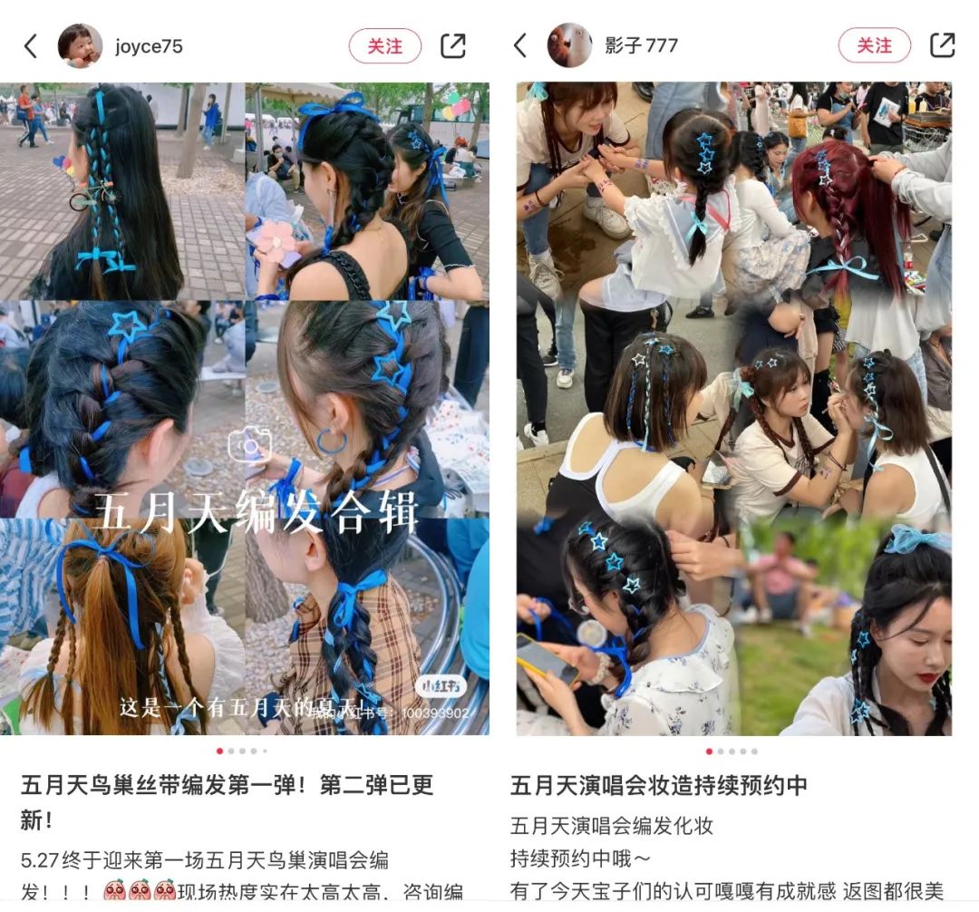 夏天+蹦迪的高强度组合下,既凉爽又还能维持颜值的编发成为粉丝们的偏爱,“谁懂啊,演唱会扎头发真的很重要”的声音响彻社交平台之后,不能自食其力的粉丝们涌向了场外的“手艺人”处。