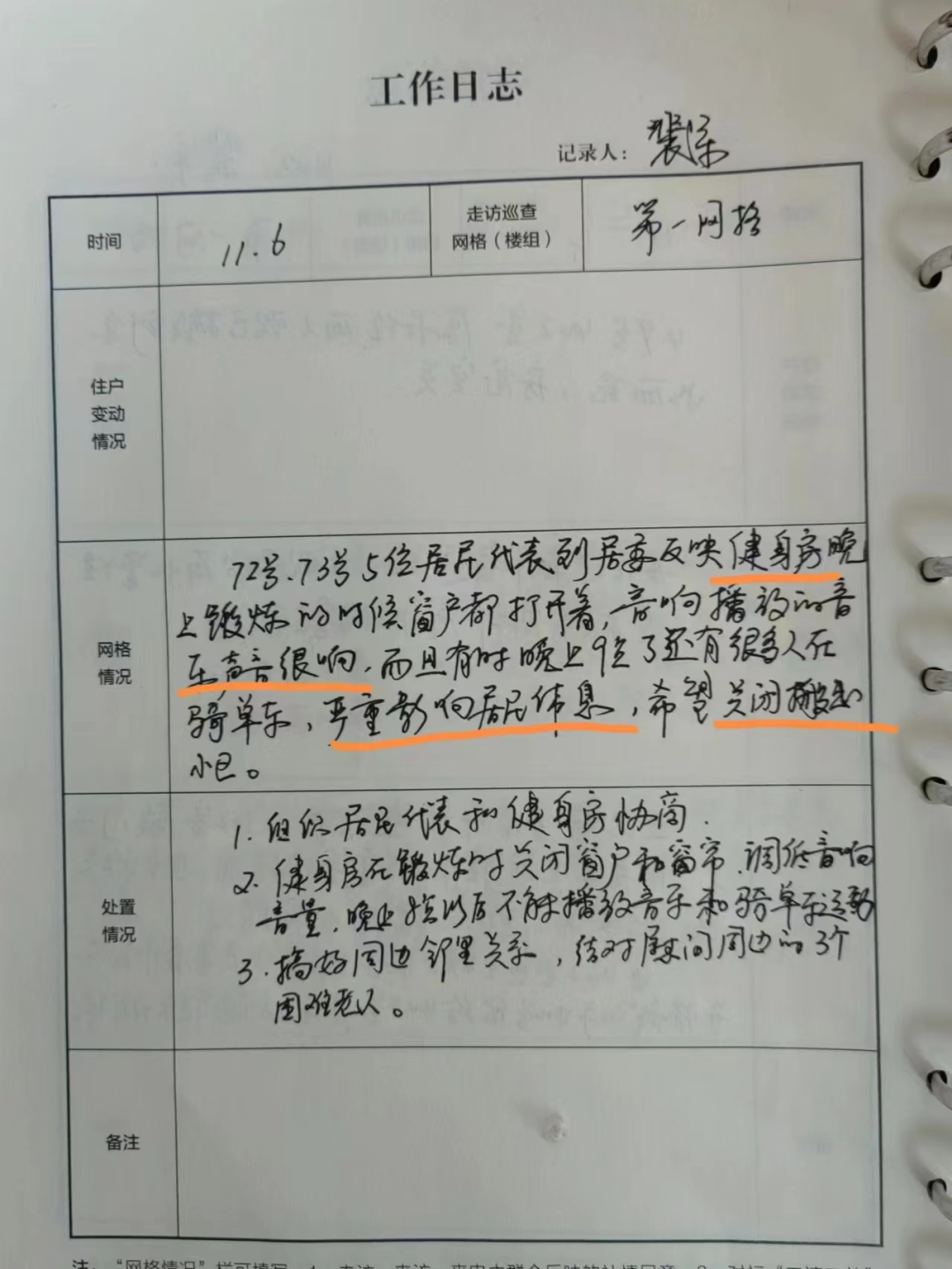 百姓健身房原先是为丰富北片社区居民多样化需求,引进专业团队管理的百姓健身场所,健身房的启用得到了小区年轻居民和周边职工、群众的欢迎。但是,慢慢的,健身播放的音乐、单车等运动强度大声音响的锻炼项目给周边居民带来了困扰,影响了居民休息,“扰民健身房”的叫法也在小区悄悄传开,居民拨打12345投诉,到居委会要求关闭扰民健身房,好事变成了坏事,这让党支部非常头疼。