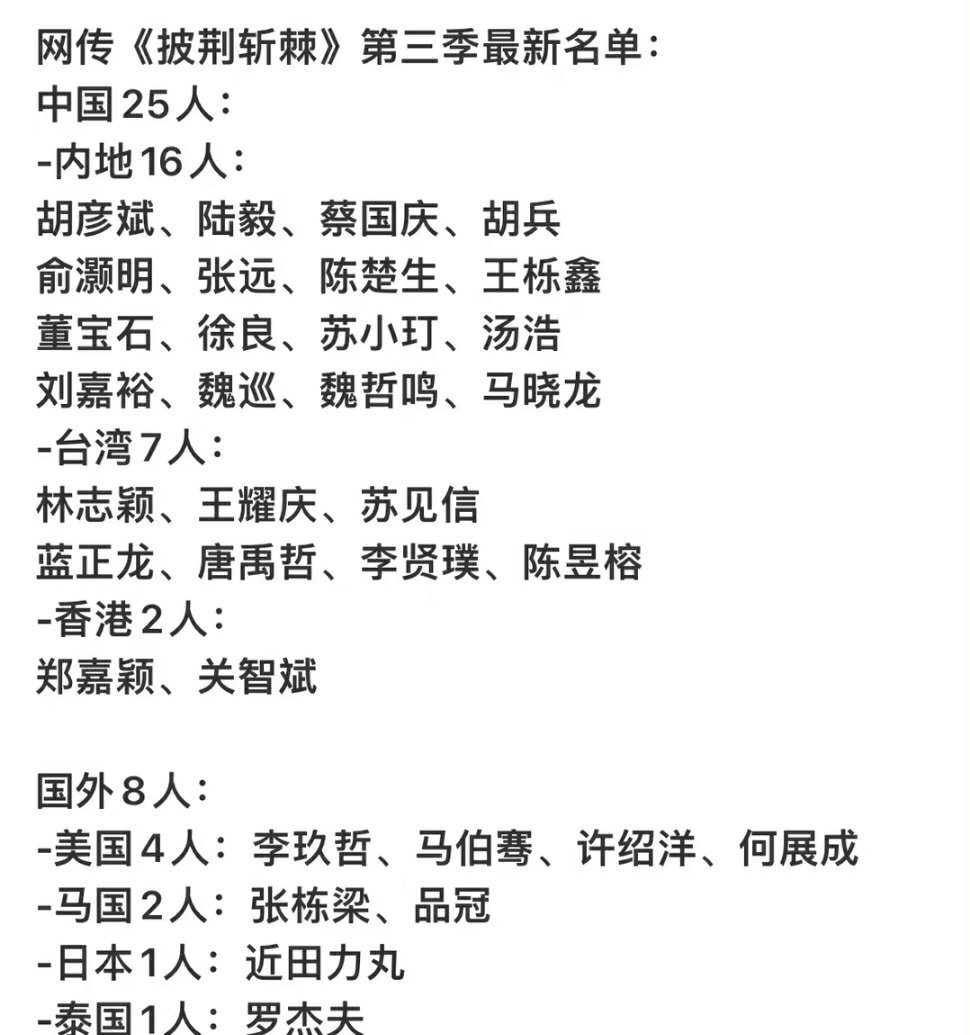 四是嘉宾国际化趋势。越来越多外籍艺人出现在《乘风2023》《披荆斩棘》等节目的舞台上。《乘风破浪》有刘逸云、美依礼芽、芝芙、吉娜、秋瓷炫、唐伯虎、卡捷琳娜等7位来自海外的艺人;而《披荆斩棘》目前流出的名单中亦有来自美国、马来西亚、日本、泰国的8位艺人,其中有大众熟悉的马伯骞、张栋梁、品冠,也有相对“冷门”的罗杰夫、近田力丸等海外艺人。当然,最终嘉宾名单还待节目组官宣。