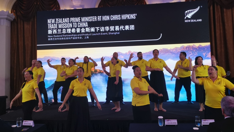 到访上海的新西兰总理希普金斯一行出席了发布会。
